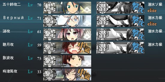 潜水キラーの五十鈴とヴェールヌイを筆頭にガンバってもらいましたが、毎度出撃する度に集中砲火受ける睦月ちゃんマジ睦月ちゃん(^ω^)