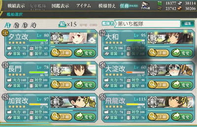 その代り連合艦隊という特性上なのか、出撃回数に反してバケツはけっこう消費した気がします。