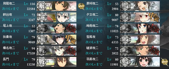 ラストは全体的に強化されてた気がしますが、目に見えて分かったのはフラヲが改になって耐久が160になってたということです^q^
