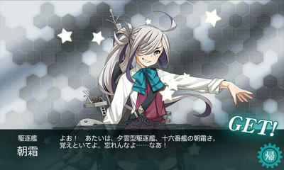海域攻略中に今イベで実装された朝霜をお迎えできましたっ!!