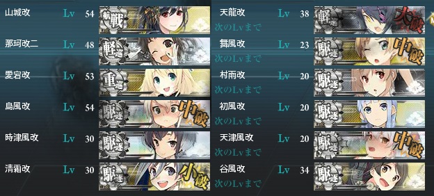 E-1で出撃した艦娘はE-2も出撃出来るとのことでしたので、ほぼE-1の使い回し編成\(^o^)/