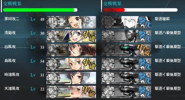 駆逐から後退して現れる『軽巡ツ級』・・・。これがやたら曲者で、避けるわ当てるわ雷撃痛いわで駆逐メインの艦隊にはかなりの強敵なのです。
