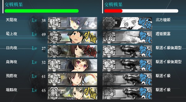 このような編成だと必ず北ルートになるようですが、司令部LV100未満の提督であれば北ルートの方が意外とイケるのでは・・・?と思います。