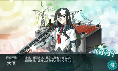 大淀さんも戦列に加わりました♪大淀さんの艤装とか、なんか特殊で良いですね