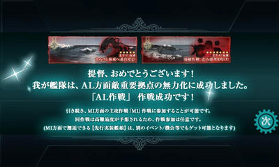 戦果としてはAL作戦を突破!引き続きMI作戦に挑んでおります(^◇^)
